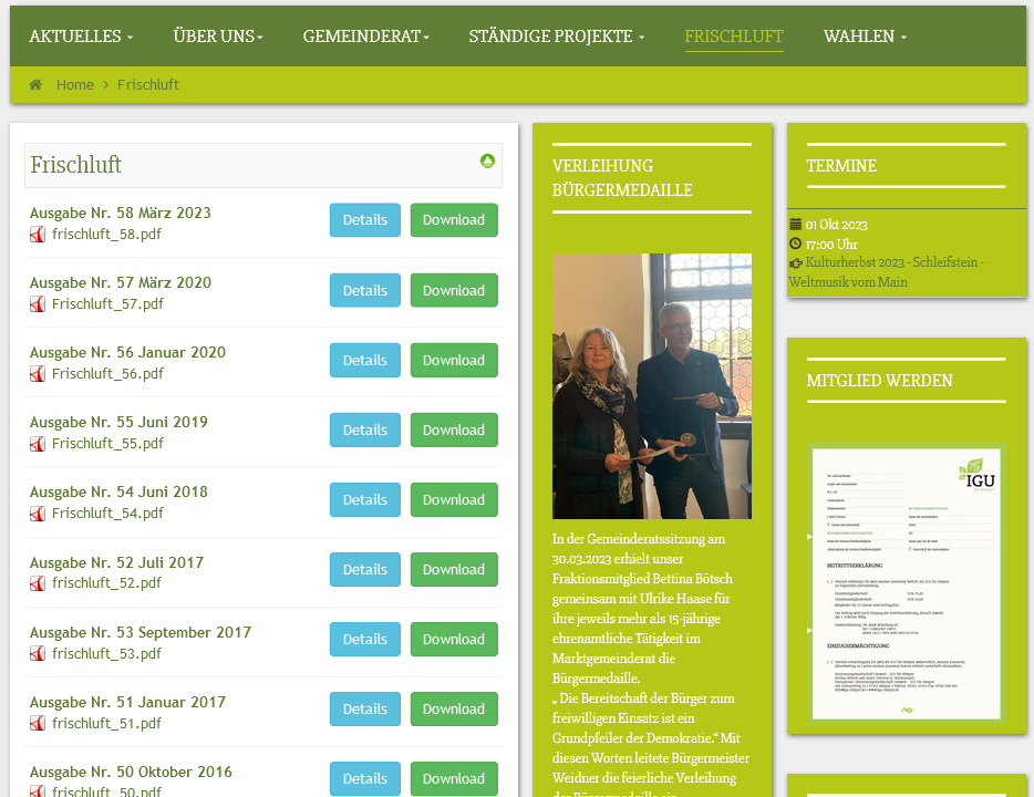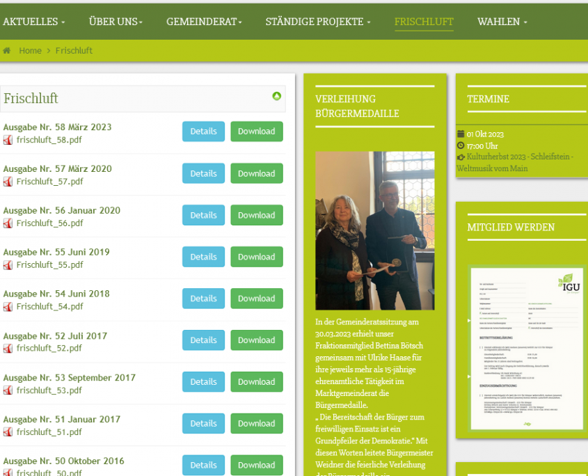 • Bereitstellung eines selbstentwickelten, responsiven Templates für Wählergemeinschaften