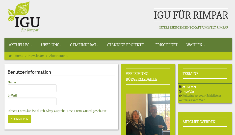 IGU für Rimpar ist eine lokale Umweltgruppe und Wählergemeinschaft.