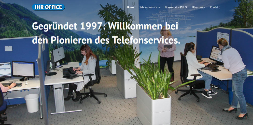 Ihr Office Telefonservice stellt sich vor: “Wir sprechen für Sie. Und das spricht für sich! Professionell – und dennoch sehr persönlich und überraschend günstig. Ihre Sekretärinnen bei Ihr Office melden sich in Ihrem Firmennamen. Sie bearbeiten die Anrufe exakt nach Ihren Vorgaben. So sichern Sie durchgängig Ihre Erreichbarkeit – in bester Qualität. Ob als Ihr Vorzimmer, Telefonzentrale oder persönliche Mitarbeiterin. Wir nehmen die für Ihr Unternehmen eingehende Anrufe entgegen, notieren Bestellungen, vereinbaren Termine, bearbeiten eingehende Beschwerden oder informieren Bewerber zu aktuellen Stellenausschreibungen. Ganz nach Ihren Wünschen und Vorgaben. Ihre Anrufer landen stets bei erfahrenen und kompetenten Ansprechpartnern.”